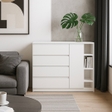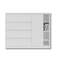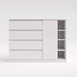Комод шириною 1400 мм. Оснащений чотирма шухлядами зліва та відкритими полицями справа. Верхня частина — суцільна кришка. Підходить для спальні, вітальні або передпокою.