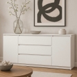 Комод довжиною 1600 мм. Центральна частина оснащена трьома шухлядами, а бокові секції виконані у вигляді тумб з полицями. Верхня частина — суцільна кришка.
