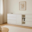Довгий комод шириною 2000 мм. Оснащений трьома висувними шухлядами зліва та трьома справа, а центральна частина виконана у вигляді відкритої ніші з полицею. Верхня частина — суцільна кришка.