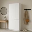 Шафа з полицями та тримачем для одягу. Верхня полиця призначена для білизни, аксесуарів або коробок, а тримач використовується для підвішування одягу.
