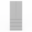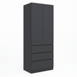 Шафа з трьома шухлядами та трьома полицями. Полиці призначені для розміщення одягу, постільної білизни або коробок, а шухляди підходять для дрібніших предметів. Шафа комбінує відкриті та закриті секції для організації зберігання.