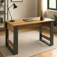 Письмовий стіл — лаконічне рішення для робочого простору. Стільниця з фактурою дерева має достатньо місця для розміщення ноутбука, гаджетів та канцелярії. Контрастні боковини створюють виразний акцент. Завдяки відкритій конструкції знизу під стіл поміщається крісло.
